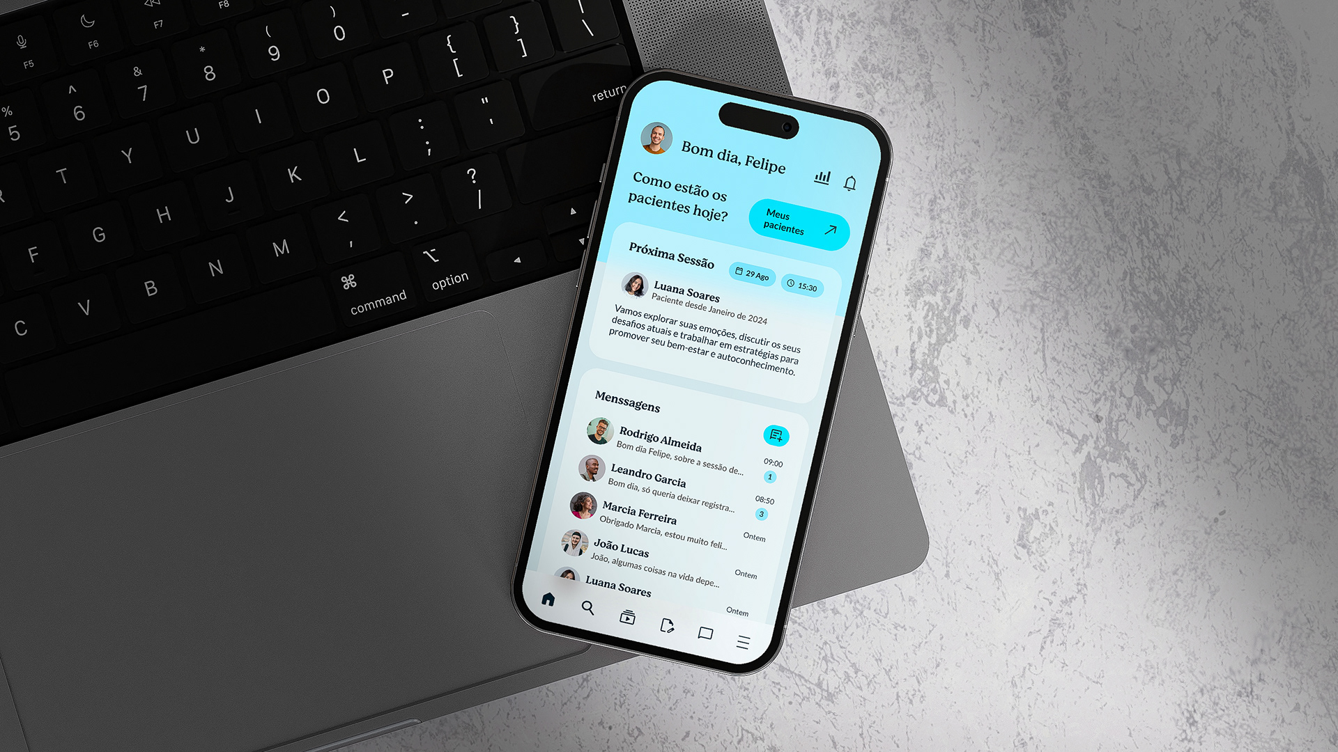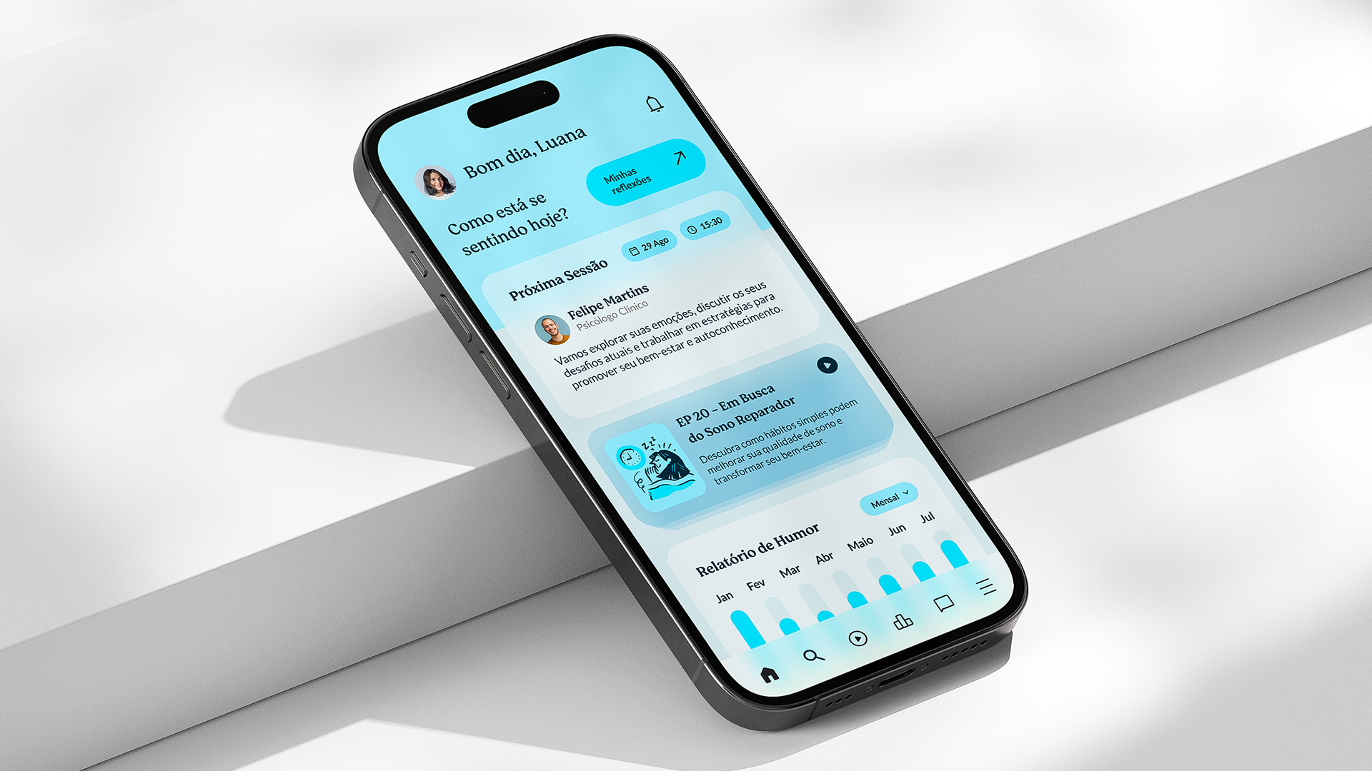 que buscam um atendimento flexível, permitindo escolher o profissional ideal, acompanhar o progresso e acessar conteúdos personalizados. A identidade visual reflete o processo contínuo do autoconhecimento, o design traduz